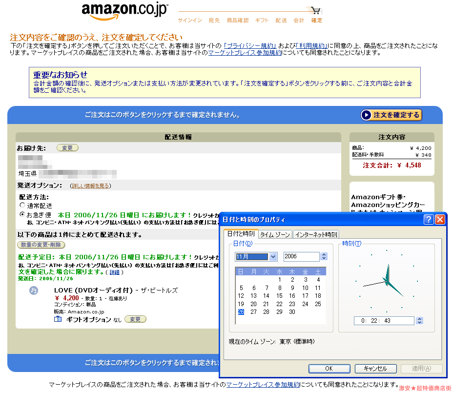 シルクドソレイユのパフォーマンスアクト「LOVE」のサウンドトラックとして買いたい管理人としては、どうしても5.1ch収録盤は外せない。すぐ聴きたいのは山々だが、在庫があったアマゾンで購入することに。そこで、普段は追加料金が気になって選択していなかった「お急ぎ便」オプションを試すことに決定。