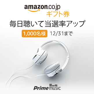Amazon.co.jpでは、プライム会員限定の音楽聴き放題サービス・Prime Musicで音楽を聴いた人を対象に、みんな大好きAmazonギフト券10,000円分を抽選で1000名にプレゼントするキャンペーンを実施中。Amazonプライム無料体験会員を含む、Amazonプライム会員、Amazon Student会員が対象。12月31日まで。キャンペーンページをサインイン状態で確認し、Prime Musicで1回以上楽曲を再生されたお客様の中から抽選で1000名様に、Amazonギフト券10,000円分のコードをプレゼント。応募期間中に聴いた日数が多いほど当選確率がアップ。毎日聴いてAmazonギフト券10,000円分をゲットしよう。詳細はリンク先で。