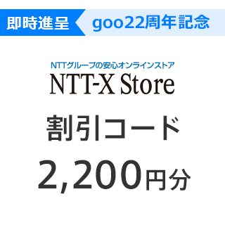 NTT-X Storeの購入で利用できる2,200円割引コードが発行中。gooポイントの登録で誰でも発行可能。割引コードはNTT-X Storeでの商品金額合計が5,200円以上(税込)の場合に利用できます。割引コードは27日まで即時に発行。コードの使用期限は27日までですが、購入者が20,000名に達した場合は、有効期限内であってもご利用いただけなくなります。割引コードの発行・利用は、一人1回限り。