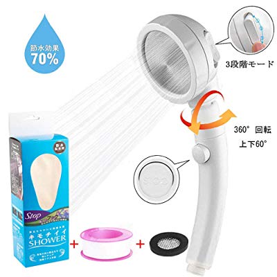 YWCHMYの3段階モード切替 節水シャワーヘッドが税込1,599円→799円〜(d払い※で実質638円〜)の激安超特価。プライム会員または2,000円以上購入で送料も無料。激安★超特価商店街読者様限定50%OFFクーポン「3AK47NDX」適用価格。※実質価格はd払い最大+25%ポイント還元(要ダブルエントリー)適用価格。ホワイトモデル以外もクーポンの割引対象。230本・0.3mmのシルクタッチ水流で、心地よい刺激となめらかな肌触りを楽しめ、節水効果まで実現するシャワーヘッド。ヘッド側面の3ボタンでスプレー、マッサージ、マッサージ&スプレーの3モードに切り替えが可能。さらに、ヘッドのグリップ付近にストップボタンが配置されており蛇口をひねらずにシャワーの一時停止が可能。増圧機能付きで、快適なシャワー感を損なわずに無理なく節水できるうえに、水圧の低い施設や高層階でも快適なシャワーを楽しめる。ヘッド部分は自由自在に角度調整ができる3D可動式。本体はABS樹脂製で、0.3mmのシャワー穴を実現した散水板はステンレス製。国際汎用基準のG1/2サイズで、工具不要なので誰も簡単に取付け可能。