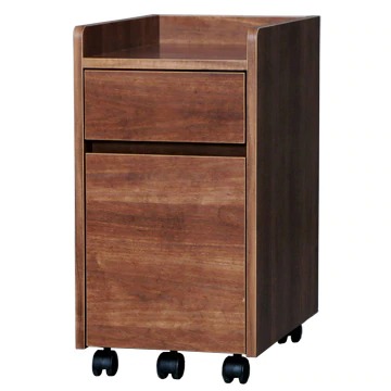 デスク下だけでなく、サイドチェストとしても使えるキャビネット。ちょっとした物を置くのに便利な天板スペース、小物収納に適した浅型引き出し、A4ファイルもぴったり収まる、たっぷり収納できる深型引き出しを装備。キャスター付きで簡単に移動できる。キャスターは前面に3個設けられており、重いものを入れてもスムーズに引き出せ、バランスを崩しにくい。