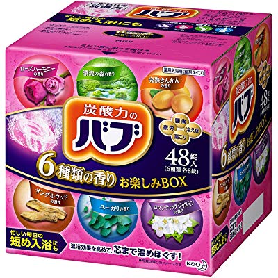 花王の炭酸入浴剤、バブ 6つの香り お楽しみBOX 48錠【医薬部外品】が税込1,176円→999円(20.8円/錠)の激安超特価。Amazonプライム会員(無料体験中でもOK)または2,000円以上購入で送料も無料。他店最安値は1,581円[価格比較サイトで相場チェック]。リンク先画面内の5%OFFクーポン適用&定期おトク便10%割引適用価格(定期おトク便は商品到着後にいつでもキャンセル可能です)。エントリー&期間中2万円以上購入で最大10,000pt還元も実施中。12月1日までのセール品。湯船の底に留まって発泡、たっぷり溶け込む、こだわりの「炭酸力」が自慢の炭酸入浴剤。「炭酸力」が温浴効果を高めて、からだの芯まで温めほぐす。疲労回復・肩こり・腰痛・冷え症に。ヒアルロン酸・うるおいオイルといった保湿成分も配合。湯上がり後の肌もしっとりなめらかに。ローズハーモニーの香り・清流の森の香り・完熟きんかんの香り・サンダルウッドの香り・ユーカリの香り・ロマンティックジャスミンの香りがそれぞれ8錠づつ、合計48錠(約1.5か月分)が入った大容量サイズ。お風呂に防水Bluetoothワイヤレススピーカーを持ち込んで、好きな音楽を楽しみながらのんびり長風呂なんていかが。