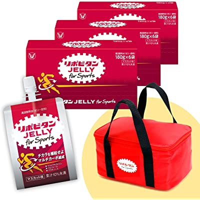 大正製薬のリポビタンゼリー for Sports 180g×18個 オリジナル保冷バッグ付が税込3,324円→1,994円(110.8円/個)の激安超特価。送料も無料。リンク先画面内の40%OFFクーポン適用価格(表示されない場合は終了あるいは対象外です)。10月27日までのセール品(早期終了する場合があります)。運動時に手軽に効率良く栄養摂取したい人におすすめのゼリー飲料。消化吸収速度の異なる複数のエネルギー源を組み合わせたマルチカーボ組成。エネルギーの源クエン酸に加え、ビタミンB1・B2・B6を素早く補給できる。脂質ゼロで手軽におにぎり約1個分(200kcal)のエネルギーを補給可能。