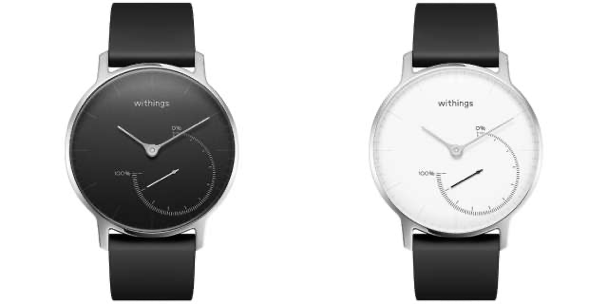 ノキアの活動量計搭載スマートウォッチ、Withings Steel HWA01 各色が税込4,980円の激安超特価。送料も無料。他店最安値は実質15,156円(参考値)[価格比較サイトで相場チェック]。25日9時までのセール品。最高のデザインと機能性をもつアクティビティトラッキングウォッチ。シンプルで美しい、腕時計らしいアナログなフェイスながらも加速度センサーを内蔵し、徒歩、走行、睡眠などの活動レベルを24時間トラッキングする活動量計を搭載。文字盤の活動量メーターで目標達成度をひと目で確認できる。5気圧(50m)防水対応で、水泳も自動認識し、水泳時間、消費カロリーを記録可能。Bluetooth内蔵によりスマートフォンと連携してデータを確認できるほか、クラウドで同社のスマート体組成計 Smart Body Analyzerの情報を取りまとめて表示できる。優しいバイブレーションで目覚めを促すアラーム機能も便利。スマートフォンとの接続で時間が自動修正されるため、手動による時間調整も不要。面倒な充電が不要なボタン電池を採用し、約8か月間の使用が可能。デジタルガジェットっぽいスマートウォッチに抵抗を感じる人におすすめ。