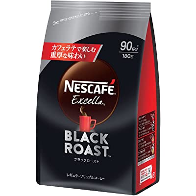 ネスカフェのエクセラ ブラックロースト つめかえ用 90杯分 180gが税込570円→456円(定期おトク便3種15%割引適用で427円・4.7円/杯)の激安超特価。ネスカフェ エクセラ つめかえ用 90杯分 180gも税込705円→634円(定期おトク便3種15%割引適用で599円・6.7円/杯)の激安超特価。送料も無料(プライム会員でない方は送料がかかる場合があります)。特選タイムセール価格&リンク先画面内の10%OFFクーポン適用定期おトク便10%割引適用価格(定期おトク便は出荷完了後に、いつでもキャンセル可能です)。エントリー&期間中1万円以上購入で最大14%還元ポイントアップキャンペーンも実施中。25日までのセール品。香ばしく、しっかりとした苦味を持つ豆を贅沢に使用したインスタントコーヒーのつめかえ。かつてないほどに深煎りにこだわった製品で、力強い香りと、重厚なコクを楽しめるのが特長。微粉砕したコーヒー豆の粒を包み込むネスカフェ独自の「挽き豆包み製法」によって、いつでも一杯ずつ淹れたて香りと味わいを楽しむことができる。サッと溶ける粉末は忙しい朝や仕事中の休憩にも最適。冷たい水や牛乳にも溶けるので、ホットだけでなく、アイスコーヒーやカフェラテにしてもOK。ネスカフェ史上最大級の深煎りとのことで、牛乳で割ってもしっかりとしたコーヒーの味わいが生きるのが魅力。レギュラーの濃さでは物足りない人にピッタリ。90杯分の大容量なので、毎日たくさんコーヒーを飲む人や、家族やオフィスなど大人数で消費する人にもオススメ。コーヒー味のケーキなど、お菓子作りにも使ってもおいしく楽しめる。