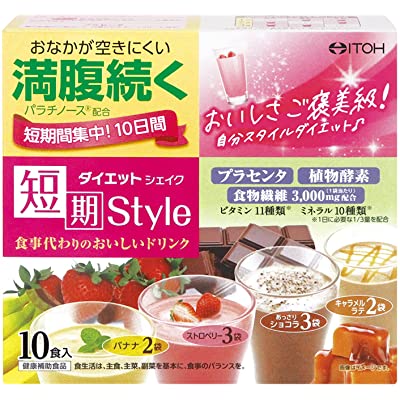 井藤漢方製薬 Meilis(メイリス)の短期スタイル ダイエットシェイク 10食分 25g×10袋が税込1,264円→885円(定期おトク便3種15%割引適用で821円・82.1円/食)の激安超特価。送料も無料。リンク先画面内の20%OFFクーポン適用&定期おトク便10%割引適用価格(定期おトク便は出荷完了後に、いつでもキャンセル可能です)。吸収速度が遅い糖質「パラチノース」配合により満腹感が続く、食事の代わりに飲むダイエットシェイク。栄養補給をサポートする植物酵素・美容成分プラセンタ・食物繊維・ビタミン11種類・ミネラル10種類も配合し、キレイと健康をサポート。牛乳または低脂肪牛乳に溶かして飲むだけなので、忙しいときでも手軽に栄養補給ができる。短期集中ダイエットを目標にする場合は、1日のうち2食をシェイクに置き換えることで摂取カロリーをグッと抑えることができる。じっくりコツコツダイエットを目標にする場合は、1日のうち1食を置き換えるだけで、普段の食生活をあまり変えることなくダイエットをサポート。4種類のおいしい定番フレーバー10食入りで、バナナ味×2袋、ストロベリー味×3袋、あっさりショコラ味×3袋、キャラメルラテ味×2袋のセット。食事としても満足できる味と満腹感にこだわったシェイクで、夏までにがんばりたい人にもぴったり。