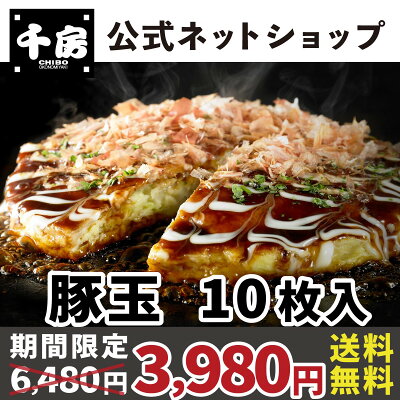 千房 大阪名店の味 豚玉 冷凍お好み焼 10枚 税込3,980円 実質3,800円(180pt還元・送料無料)