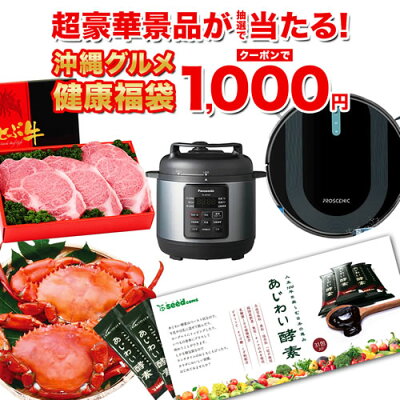 シードコムスの蟹・牛肉・ロボット掃除機・ケルヒャー・デロンギオーブンが当たる!かもしれない 選べる沖縄グルメ&あじわい酵素31包 福袋2023が税込6,480円→1,000円の激安超特価。送料も無料。1月2日限定5,480円OFFクーポン適用価格。エントリー&期間中5,000円以上で最大ポイント7倍・超ポイントバック祭やエントリー&2ショップ購入でポイント4倍も適用可能。もちろん楽天SPU スーパーポイントアップで最大16倍の対象。1月2日限定のセール品。