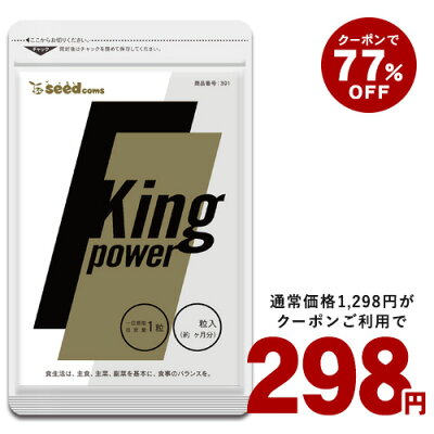 シードコムスの20倍濃縮マカ+100倍濃縮トンカットアリ配合サプリ、キングパワー 約1ヶ月分が税込1,298円→298円の激安超特価。送料も無料。リンク先画面内の1,000円OFFクーポン適用価格。割引後価格1,000円以上の購入で楽天イーグルス勝利 エントリーで全ショップポイント2倍、サンキューショップ限定エントリー&3,980円以上購入でポイント2倍、エントリー&リピート購入でポイント2倍、毎月5・10・15・20・25・30日はエントリー&楽天カード決済でポイント5倍も適用可能。も適用可能。もちろん楽天スーパーSALEのエントリー&買い回りでポイント最大10倍と楽天SPU スーパーポイントアップで最大16倍の対象。きょう24時までのセール品。