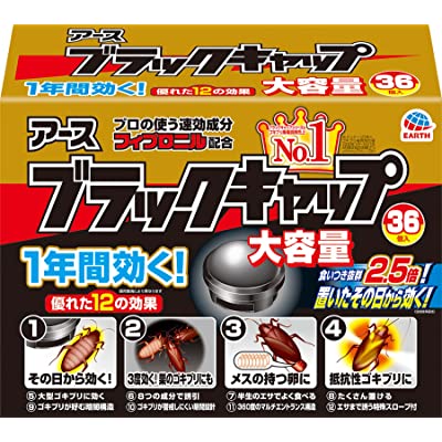 アース製薬の家中のG駆除剤、ブラックキャップ 大容量 36個入が税込1,364円→1,228円(34.1円/個)の特価。Amazonプライム会員(無料体験中でもOK)または2,000円以上購入で送料も無料。リンク先画面内の10%OFFクーポン適用価格。エントリー&期間中1万円以上購入で最大12%還元ポイントアップキャンペーンも実施中。きょう4日までのセール品。優れた12の効果で1年間効く、置いたその日から効くG駆除剤(毒餌)。メスの持つ卵、薬剤抵抗性G、巣のGにも置いたその日から効きます。黒いマルチエントランス容器で暗がりを好むGに効果的。従来品比2.5倍・抜群の食いつきで、家に隠れているGを根絶やしに。マイホームに勝手に上がり込み、傍若無人に振る舞う奴らを絶対に許さない🔥