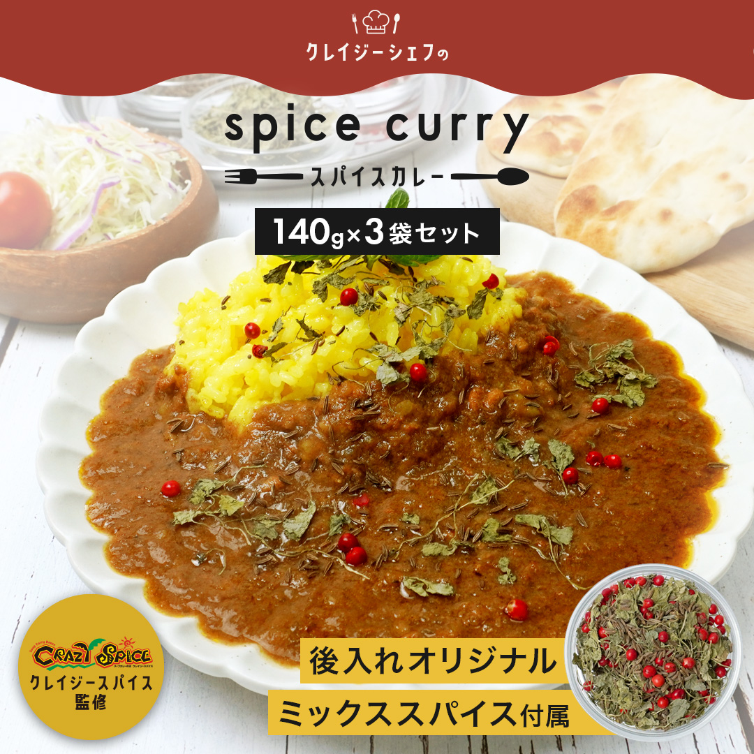 北海道スープカレー店「クレイジースパイス」監修 本格スパイスカレー 140g×3袋セットが税込1,000円→500円(実質457円・152.3円/袋)の特価。送料も無料。先着1000名限定50%OFFクーポン適用価格。1,000円以上の購入でお買い物マラソンのエントリー&買いまわりでポイント最大10倍と楽天SPU スーパーポイントアップで最大15.5倍の対象。→[11:30追記:クーポンの先着利用上限回数に到達しました]