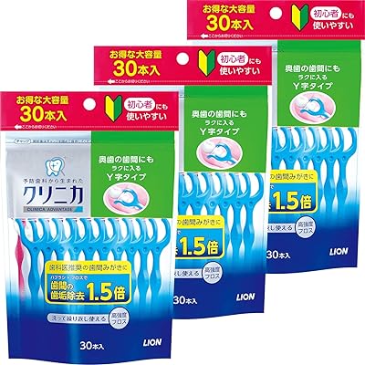 クリニカのアドバンテージ デンタルフロス Y字タイプ ミント 30本入り×3個がAmazonプライム会員(無料体験中でもOK)限定で税込837円→753円(定期おトク便3種15%割引適用で711円・7.9円/本)の特価。送料も無料。プライム感謝祭先行セール価格&定期おトク便10%割引適用価格(定期おトク便は出荷完了後に、いつでもキャンセル可能です)。エントリー&規定額以上購入でポイントアップキャンペーンも実施中。10日までのセール品。歯科医推奨の歯間ケアが実践できるデンタルフロス。Y字型ホルダーが虫歯になりやすい奥歯の歯間にもラクに入り、しっかりケアできる。120本のミクロ繊維束(フロス)にたるみをもたせ、歯面を広く覆い、歯垢をからめ取る。洗って繰り返し使える高強度フロス採用。歯ブラシでみがいた後にデンタルフロスを使うと、歯垢(プラーク)の除去率が約1.5倍にアップするとのこと。虫歯・歯周病・口臭の予防に。90本セットの大容量なので、家族で使うのはもちろん、自宅用と職場用と携帯用に分けて使えるのがうれしい。