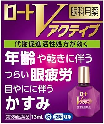 「ロートVアクティブ」は基準内最大濃度配合した有効成分が角膜代謝機能を活性化、涙液成分補給で、年齢や乾きによる疲れ目を改善します。また、かゆみ抑制成分を配合し、今起きている炎症やかゆみなど不快な症状にもよく効きます。ゴマ油(製剤の安定剤)とハッカ油・ユーカリ油(清涼化剤)配合で、うるおい感のあるすっきり気持ちいいさし心地です。年齢や乾きに伴うつらい眼疲労、目のかすみ(目やにの多いときなど)、目の疲れ、結膜充血、目のかゆみ、眼病予防(水泳のあと、ほこりや汗が目に入ったときなど)、眼瞼炎(まぶたのただれ)、紫外線その他の光線による眼炎(雪目など)、ハードコンタクトレンズを装着しているときの不快感などに。ぜひ近所のごラッグストアの価格を確かめて。