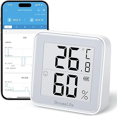 GoveeLifeの電子インクスクリーン採用 Bluetooth温湿度計が税込1,999円→999円(40pt還元・実質959円)の特価。Amazonプライム会員(無料体験中でもOK)または2,000円以上購入で送料も無料。リンク先画面内の50%OFFクーポン適用価格。→終了しました紙のような見やすい電子インクスクリーンを採用した、スマホアプリとも接続できるBluetooth温湿度計。目に優しい電子インクスクリーンを採用し、紙のように読み取りやすいので温度・湿度をはっきり読み取れ、お年寄りにも使いやすい。スマホアプリと接続することで、離れた場所からの温湿度管理や、ヒストリカルデータをグラフとしてプロット可能。しきい値を外れるとアラームも飛ぶので、植物やペット、食料庫の温湿度管理にぴったり。もちろんお部屋の温度・湿度管理にも。低消費電力でボタン電池の寿命は約12ヶ月。交換のわずらわしさも最小限。