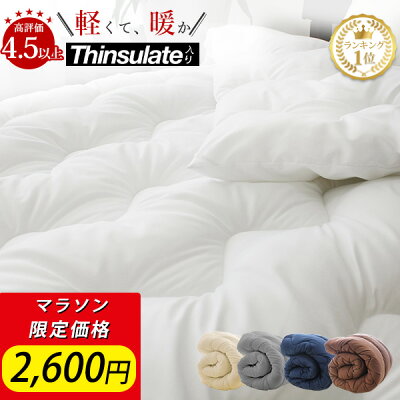 NENEKOの軽くて暖かい シンサレート採用掛け布団 シングルロングが税込2,599円の特価。送料も無料。セミダブルロング2,980円、ダブルロング3,280円、クイーンロング3,880円、キングロング3,980円も販売中。サンキューショップ限定エントリー&3,980円以上購入でポイント2倍、毎月5・10・15・20・25・30日はエントリー&楽天カード決済でポイント4倍も適用可能。もちろんお買い物マラソンのエントリー&買いまわりでポイント最大10倍と、楽天SPU スーパーポイントアップで最大16.5倍の対象。