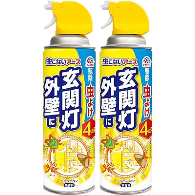 アース製薬の虫こないアース 玄関灯・外壁に 450mL×2本が税込1,282円→641円(定期おトク便3種15%割引適用で577円・288.5円/本)の特価。送料も無料。他店最安値は1本602円(送料別)[価格比較サイトで相場チェック]。リンク先画面内の40%OFFクーポン適用&定期おトク便10%割引適用価格(定期おトク便は出荷完了後に、いつでもキャンセル可能です)。エントリー&規定額以上のお買い物で最大5,000ポイント還元も実施中。本日限定のセール品。玄関灯や家の外壁にスプレーするだけで、すぐれた虫よけ効果を発揮してくれる殺虫剤。撥水成分シリコーン配合で雨にも強く、虫よけ効果は最大約4ヵ月間持続してくれる。ジェット噴射で、高い所の玄関灯、外壁にも簡単に処理できる。蛾や羽アリ、ユスリカ、カメムシ、ブヨ、アブ、ハチといった虫に対し効果を発揮し、虫に直接スプレーして駆除も可能。