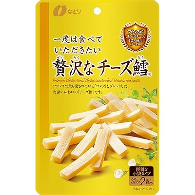 なとりの一度は食べていただきたい 贅沢なチーズ鱈 64g×5袋が税込1,311円(定期おトク便3種5%OFF適用で1,245円・249.0円/袋)の特価。送料も無料。プライムデー先行セール価格。エントリー&期間中1万円以上購入で最大15%還元ポイントアップキャンペーンも実施中。17日まで(?)のセール品。本格的なチーズの味わいを求めている人に是非とも食べていただきたい、上質な味わいの贅沢なチーズ鱈。より贅沢感のあるチーズ鱈を作り上げるために、奥深い味わいを持つフランス産チーズ「コンテ」をブレンド。コンテチーズとは1000年以上の歴史をもつフランスで最も愛されているチーズで、ナッツのような芳醇な風味が長続きする点が特徴。コクのある熟成チェダーと芳醇な風味を持つコンテをブレンドすることで、おいしさが持続する奥深い味わいに仕上げた品。ワインとのマリアージュをお楽しみ下さい。「これはうまい、チーズ好きな人には最高だと思う」とのカスタマーレビューもあり。