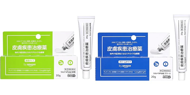 by Amazonの皮膚疾患治療薬【第2類医薬品】、ラカナウ PVA8 軟膏タイプ 20gが税込702円→491円の特価。リンク先画面内の30%OFFクーポン適用価格。20日までのセール品。かゆくてつらい湿疹、皮膚炎、かぶれ、虫さされ、じんましんなどの症状をやわらげる皮膚疾患治療薬。プレドニゾロン吉草酸エステル酢酸エステル(PVA) 1.5mg配合。体内で低活性になるステロイド治療薬。