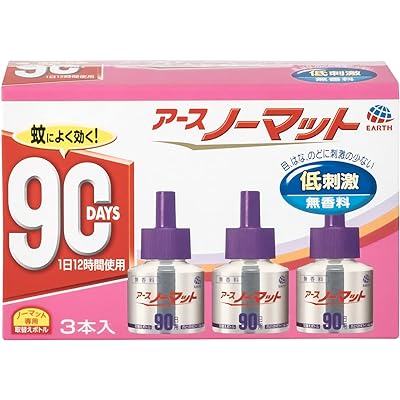 アース製薬のアースノーマット 90日用 低刺激・無香料タイプ 取替えボトル 3本入が税込2,074円→1,244円(414.7円/本)の特価。Amazonプライム会員(無料体験中でもOK)または3,500円以上購入で送料も無料。リンク先画面内の40%OFFクーポン適用価格。19日までのセール品。液体蚊とりアースノーマットのどの器具にも使える取替えボトル。すぐれた殺虫効果と安定した効きめで蚊を駆除し、窓を開けても効きめが長時間持続する。屋外からの蚊の侵入も防ぎます。特に香りに敏感な人にもオススメの低刺激・無香料タイプで、赤ちゃんやペットのいるご家庭でも安心して使える。使い始めから終わりまで、安定した効きめで優れた蚊の殺虫効果がボトル1本で3ヵ月間持続します(1日12時間使用、延べ約1080時間)。