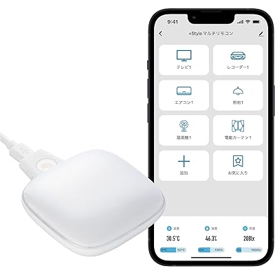 プラススタイルのスマートスピーカー対応学習リモコン、マルチリモコンが税込1,980円の特価。送料も無料。プライムデー先行セール価格。エントリー&期間中1万円以上購入で最大15%還元ポイントアップキャンペーンも実施中。17日まで(?)のセール品。赤外線リモコンで操作できる家電をまとめてアプリから操作可能にする、スマートスピーカー対応学習リモコン(スマートリモコン)。SwitchB〇tと異なる点として、温度・湿度・照度が測れるセンサーユニットが付属するため、外出先からペットや家族がいる自宅の室温を確認し、遠隔操作でエアコンを付けたり、温度・湿度・照度センサーを条件としたアクションをスマホアプリで設定(自動化設定)することも可能。夏場の室温上昇による熱中症対策や、冬場の温度差によるヒートショック対策に有効。Amazonアレクサ、Googleアシスタントと連携して、話しかけるだけで家電や+Styleシリーズデバイスを操作可能(※Siriは非対応)。「行ってきます」や「おやすみ」の一言で家電を一斉にオフしたり、帰宅前に外出先からスマホでエアコンのスイッチをオンにすることができる。エアコン、テレビ、照明など、国内外の主要メーカーのリモコンが登録済み。もちろんプリセットされていないリモコンでも、手動でリモコン信号を登録可能。