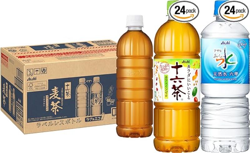 アサヒ飲料のペットボトル入り麦茶飲料、十六茶麦茶 ラベルレス 660ml×24本が十六茶 630ml×24本とセットで税込4,300円→2,419円(50.4円/本)の特価。十六茶麦茶 ラベルレスとおいしい水 六甲 600ml×24本との組み合わせでも税込4,529円→2,339円(48.7円/本)の特価。送料も無料。【A群】十六茶麦茶・スーパーH2Oの40%自動割引&リンク先画面内の20%(十六茶麦茶)・298円(おいしい水 六甲)OFFクーポン&定期おトク便5%割引価格(「通常の注文」からカートに入れ、レジでそれぞれに定期おトク便を設定すると表記の価格に割引されます。定期おトク便は出荷完了後に、いつでもキャンセル可能です)。リセッシュ除菌EX WIDE JET 爽やかなそよ風の香り 本体 410mlが同梱で実質無料になります(期間中1回のみ)。40%OFFになる【A群】は十六茶麦茶・スーパーH2Oの4種(ラベル有・無)、【B群】組み合わせ対象は10月から値上げが予定されている三ツ矢サイダーやカルピス各種、ウィルキンソン、おいしい水に和紅茶やルイボスなどのお茶系、ワンダなどのコーヒーも対象。→十六茶麦茶(ラベルレス)は+1,118円/1ケースで3ケースまで追加できます。レジ画面で数量を変更可能です。6日までのセール品。こだわりの六条大麦と、厳選された香ばし素材をトリプル焙煎で仕上げた香ばしさが際立つ麦茶。東洋健康思想に基づき、麦だけではない自然を感じる16素材をブレンドしており、香ばしい香りが楽しめる。ミネラル入り、カフェインゼロ、アレルギー特定原材料等28品目不使用。「乳児用規格適用商品」なので、大人はもちろん小さな子どもまでみんなで楽しめる。カフェインレスなので寝る前にも飲めるのがウレシイ。たっぷり飲める660mlサイズで、たくさんの水分を摂取したい時にぴったり。