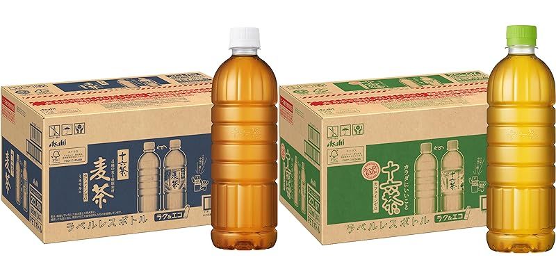 アサヒ飲料のペットボトル入り麦茶飲料、十六茶麦茶 ラベルレス 660ml×24本が十六茶 ラベルレスボトル 630mlとセットで税込4,059円→2,232円(46.5円/本)の特価。十六茶麦茶+ほうじ茶or一級茶葉烏龍茶のセットも税込2,210円(46.0円/本)、十六茶麦茶+颯のセットも税込2,278円(47.5円/本)の特価。送料も無料。【A群】十六茶麦茶・スーパーH2Oの40%自動割引&リンク先画面内の20%OFFクーポン&定期おトク便5%割引価格(「通常の注文」からカートに入れ、レジでそれぞれに定期おトク便を設定すると表記の価格に割引されます。定期おトク便は出荷完了後に、いつでもキャンセル可能です)。リセッシュ除菌EX WIDE JET 爽やかなそよ風の香り 本体 410mlが同梱で実質無料になります(期間中1回のみ)。40%OFFになる【A群】は十六茶麦茶・スーパーH2Oの4種(ラベル有・無)、【B群】組み合わせ対象は10月から値上げが予定されている三ツ矢サイダーやカルピス各種、ウィルキンソン、おいしい水に和紅茶やルイボスなどのお茶系、ワンダなどのコーヒーも対象。→十六茶麦茶(ラベルレス)は+1,118円/1ケースで3ケースまで追加できます。レジ画面で数量を変更可能です。9日までのセール品。こだわりの六条大麦と、厳選された香ばし素材をトリプル焙煎で仕上げた香ばしさが際立つ麦茶。東洋健康思想に基づき、麦だけではない自然を感じる16素材をブレンドしており、香ばしい香りが楽しめる。ミネラル入り、カフェインゼロ、アレルギー特定原材料等28品目不使用。「乳児用規格適用商品」なので、大人はもちろん小さな子どもまでみんなで楽しめる。カフェインレスなので寝る前にも飲めるのがウレシイ。たっぷり飲める660mlサイズで、たくさんの水分を摂取したい時にぴったり。
