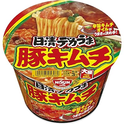 日清食品の日清デカうま 豚キムチ カップ麺 101g×12個が税込1,309円(109.1円/個)の特価。Amazonプライム会員(無料体験中でもOK)または3,500円以上購入で送料も無料。