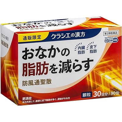 クラシエの防風通聖散料エキス顆粒 90包が税込2,460円(27.3円/包)の特価。Amazonプライム会員(無料体験中でもOK)または3,500円以上購入で送料も無料。Amazonブラックフライデー サプライズプレセール価格。「防風通聖散」は、漢方の古典といわれる中国の医書「宣明論」に収載されている薬方です。便秘がちで、腹部に皮下脂肪が多い方の肥満症、肥満に伴う便秘などに効果があります。体力充実して腹部に皮下脂肪が多く、便秘がちなものの次の諸症:高血圧や肥満に伴う動悸・肩こり・のぼせ・むくみ・便秘、蓄膿症(副鼻腔炎)、湿疹・皮膚炎、ふきでもの(にきび)、肥満症に。第2類医薬品。
