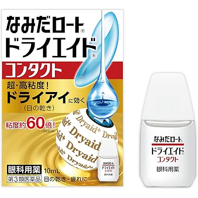 ロート製薬の超・高粘度&保湿目薬、なみだロート ドライエイド コンタクトa 10mlが税込827円、なみだロートドライエイド 10mLが税込845円の特価。Amazonプライム会員(無料体験中でもOK)または3,500円以上購入で送料も無料。タイムセール価格。エントリー&規定額以上購入でポイントアップキャンペーンも実施中。12日までのセール品。涙液3層のそれぞれの働きを考えた、"とろみ”が瞳にベールして涙の蒸発を抑える超・高粘度目薬。高粘度約60倍(V・ロートとの比較)のとろっとした薬液が、涙の膜を作るように潤いをとどめ、涙の蒸発を抑えて目の乾きに優れた効果を発揮します。涙は外側から、油層(涙の蒸発を防ぐ)、水層(酸素や栄養を多く含む)、ムチン層(涙を目の表目に留める)の3層で形成されています。涙液の補助(目のかわき)、目の疲れ、目のかすみ(目やにの多いときなど)、ソフトコンタクトレンズまたはハードコンタクトレンズを装着しているときの不快感、がまんできない乾き目などに。すべてのコンタクトレンズ(ソフト・ハード・O2・使い捨て)にお使いいただけます。