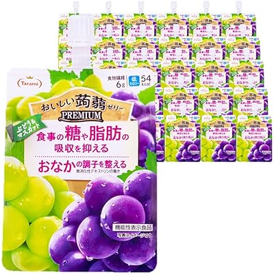 たらみの蒟蒻ゼリー(機能性表示食品)、おいしい 蒟蒻ゼリー PREMIUM ぶどう&マスカット 150g×30個が税込2,980円(99.3円/個)の特価。PREMIUM+ 白桃&黄金桃 150g×30個も同価格。送料も無料。プライムデーセール価格。エントリー&期間中1万円以上購入で最大15%還元ポイントアップキャンペーンも実施中。17日までのセール品。食事の糖や脂肪の吸収を抑え、おなかの調子を整える、機能性表示食品の蒟蒻ゼリー。赤ぶどう果汁とマスカット果汁を使用し、2種のぶどうのプレミアムな美味しさで健康ケア。芳醇なコクと爽やかな果汁感を楽しめる。難消化性デキストリン(食物繊維)は食事の脂肪や糖の吸収を抑えることが報告されています。さらに、おなかの調子を整えることが報告されています。食物繊維を6g配合し、約54kcalと低カロリーなのもウレシイ。