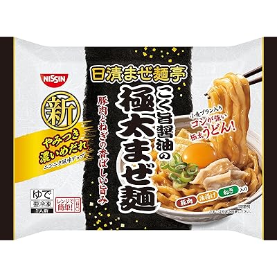 日清食品冷凍の日清まぜ麺亭 こく旨醤油の極太まぜ麺 247g×4個が税込886円(定期おトク便3種5%割引適用で842円・210.5円/袋)の特価。送料も無料(保冷手数料も無料)。プライムデーより安くなりました。→値上がりしました豚肉のうまみを効かせたコクのある醤油だれに、小麦ブラン入りの極太うどんを合わせた、やみつきになる味わいの極太まぜ麺。コシの強いもっちりとした食感の極太ちぢれ“うどん"を使用。豚肉のうまみをたっぷり効かせた醤油に、にんにく風味をさらに効かせたやみつきの濃いめだれで仕上げました。具には豚肉、油揚げ、甘みのあるねぎ入りで、満足感のある一品に仕上げました。レンジで簡単に調理出来るお手軽な商品です。2023年秋から更に美味しくリニューアル。是非ご賞味ください。