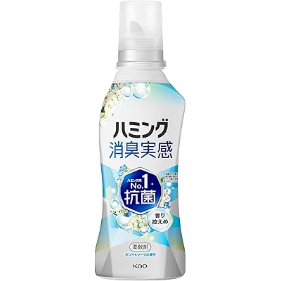 花王の柔軟剤、ハミング消臭実感 香り控えめホワイトソープの香り 本体 510mlが税込303円→151円の特価。Amazonプライム会員(無料体験中でもOK)または3,500円以上購入で送料も無料。リンク先画面内の50%OFFクーポン適用価格。きょう30日までのセール品。どーんな時も無敵消臭!部屋干し・曇り干し・夜干し・すぐ干せない時でもクサくならない!ハミング史上No.1抗菌の柔軟剤。アタックの消臭技術も採用し、3大悪臭菌(生乾き臭・汗臭・靴下臭)に効く。着用中の汗臭や濡れ戻り臭といったニオイ戻りをブロックし、洗たく槽の防カビ効果も。もちろん洗たくじわも防いでふんわりやわらかに仕上がる。静電気を防いでくれるため、花粉を寄せ付けないブロック効果も。香り控えめホワイトソープの香り。