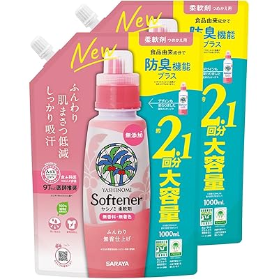 サラヤのヤシノミ 柔軟剤 詰め替え用 液体 1000mL×2個がAmazonプライム会員(無料体験中でもOK)限定で税込1,099円→989円(定期おトク便3種15%割引適用で934円・467.0円/個)の特価。送料も無料。プライムデー先行セール価格&定期おトク便10%割引適用価格(定期おトク便は出荷完了後に、いつでもキャンセル可能です)。エントリー&期間中規定額以上購入で最大5,000pt還元ポイントアップキャンペーンも実施中。14日までのセール品。ヤシの実由来の柔軟成分で「高い柔軟効果」と「肌へのやさしさ」を両立した、100%植物由来柔軟成分を使用した柔軟剤の大量量つめかえ。柔軟性と吸水性を満たすため、2種類の柔軟成分をバランスよく配合し、ふんわり肌まさつを低減。しっかり吸汗して静電気も防いでくれる。お肌へのやさしさはそのままに、食品由来成分で防臭機能もプラス。さらに、石油系界面活性剤・シリコン・香料・着色料無添加で、子供の衣類にも安心して使用できる。残留刺激テスト済み、皮ふ刺激テスト済み。排水後は微生物によって分解され地球に還るので、環境にも配慮したい人にはもちろん、強い香りが苦手な人にもぴったり。2個で本体に約4.2回つめかえできる大容量なので、重たい買い物の回数を減らしたい人にも◎。皮膚科医97%が推奨する品。ヤシノミ 洗たく洗剤との併用がオススメ。