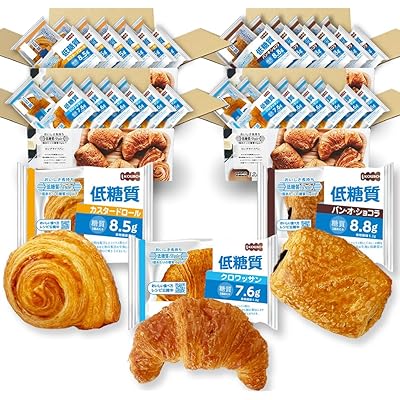 糖質を抑えたチョコが端まで入って1個あたり糖質8.8g、糖質制限中でもチョコ入りのパンを楽しめる「低糖質パン・オ・ショコラ」をはじめとする「低糖質カスタードロール」「低糖質クロワッサン」の3種類セットで飽きずに楽しめそう。