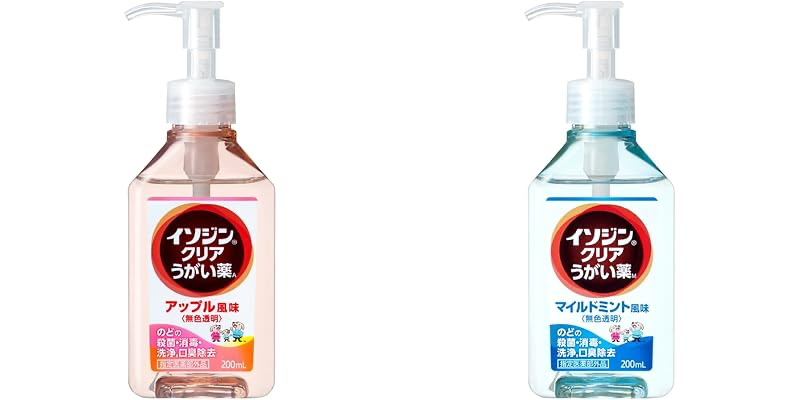 ムンディファーマのうがい薬、イソジン 液体 イソジンクリアうがい薬A アップル風味 200mLが税込882円、マイルドミント風味 200mLも税込892円の特価。Amazonプライム会員(無料体験中でもOK)または3,500円以上購入で送料も無料。スマイルSALE価格。エントリー&規定額以上購入で最大10%還元ポイントアップキャンペーンも実施中。3月4日までのセール品。家族みんなでキレイに使える、信頼のイソジンブランドの無色透明のうがい薬。のどの粘膜や口内での細菌の増殖を抑制する有効成分CPC(セチルピリジニウム塩化物水和物)とグリチルリチン酸二カリウムを配合。寝起きや食後など、不衛生になっている口腔内を洗浄し、有効成分が口臭の原因菌を殺菌し口臭ケアを実現します。無色透明なので洗面台が汚れず、大切な衣類も安心。さわやかな風味で、茶色いヨード液の味や匂いが苦手なお子様にもお使いいただけます。50mLのお水にワンプッシュ(1mL)でたっぷり200回分。4人家族で朝晩1日2回ずつ使っても、1ヶ月近くご利用いただけます。指定医薬部外品。