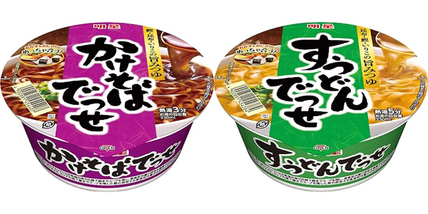 明星のカップ麺、かけそばでっせ 67g×12個が税込1,278円(106.5円/個)の特価。すうどんでっせ 67g×12個、焼そばでっせ ソース味 99g×12個も同価格。Amazonプライム会員(無料体験中でもOK)または3,500円以上購入で送料も無料。シンプルな品質をとことん追求したお手頃価格のミニマムカップ麺。鰹節、昆布、いりこのだしを効かせた味わい深いつゆに薬味のネギを添えた「かけそば」。麺とつゆをシンプルに味わえるので食べ方色々。シンプルにそのままで食べてもよし、好きなおかずなどをトッピングして食べてもよし、おにぎりと一緒に、温かい汁ものとして楽しんでもよし。旨みが強く、そのままでもおかずと合わせてもマッチする。ランチのプラスワンにぴったり。