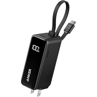 AnkerのUSB-Cケーブル・コンセント一体型5000mAhモバイルバッテリー、Anker Power Bank(30W, Fusion, Built-In USB-C ケーブル)が税込3,990円→3,690円の特価。送料も無料。Amazonブラックフライデー先行セール価格&リンク先画面内の300円OFFクーポン適用価格(ブラックのみ)。エントリー&規定額以上購入でポイントアップキャンペーンも実施中。12月1日までのセール品。→[19:50再追記:クーポンが復活しました]5000mAhのモバイルバッテリーとUSB-Cケーブルを内蔵したUSB急速充電器がひとつになった、1台で3役こなすハイブリッドUSB充電器。充電器としては最大30W、モバイルバッテリーとしても最大22.5W出力でiPhone 16シリーズにも最大3倍速く急速充電が可能。本体表面にはディスプレイを搭載し、バッテリーの残量をリアルタイムかつ一目で確認できる。コンセントに挿すと始めにモバイル機器を充電し、その後に内蔵バッテリーの充電を開始する。スマホなどに充電器として使用しつつモバイルバッテリーにも充電されるため、充電忘れの心配がない。5000mAh内蔵でスマホを約1回充電できる。折りたたみ式プラグを採用しているため、持ち運びにも便利。ポーチやミニバッグにも収まる小型デザイン。コンセント一体型且つUSB-Cケーブル一体型のため、旅行や出張のときに余分な充電器やケーブルを持ち歩く必要もなし。18か月の保証つき。